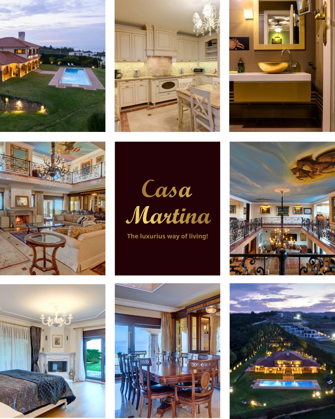Casa Martina adyton is more than just a luxury residence it is a realm of inner silence and eclectic living. Designed as a private "Adyton" bathed in the light of Chalkidiki, it is crafted from stone, marble, and natural materials that exude timeless quality and discreet nobility. Spanning 750m² across three levels, the estate offers an experience of absolute comfort, featuring an internal elevator, a private garage, and an independent 50m². guest studio. Casa Martina adyton is situated 1.4–1.6 km from Chanioti Beach (a 4–5 minute drive or a 15–20 minute walk), perfectly balancing secluded privacy with direct access to the vibrant local center.