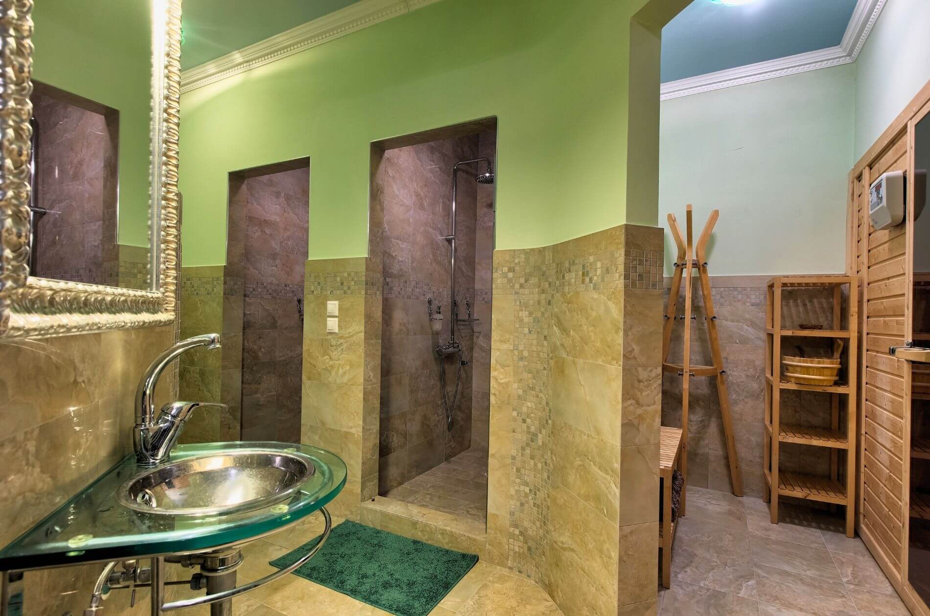 The lower level is dedicated to wellness and independent living. The private spa features a six-person sauna, a five-person hammam, showers, and a massage room, creating a sanctuary for deep relaxation and self-care. Adjacent to this, the home cinema, complete with a fireplace and a service kitchen, serves as a cozy, private gathering space.