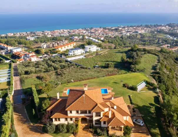Thessaloniki Airport (SKG): Approximately 93 km (1 hour and 10–15 minutes by car). The location ensures unobstructed views, easy accessibility, and absolute tranquility.